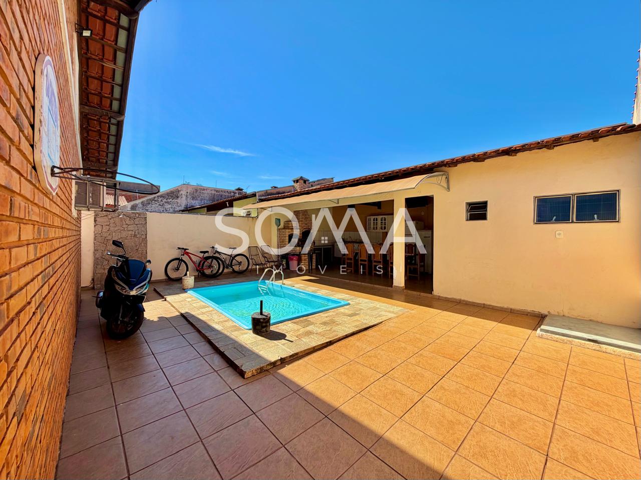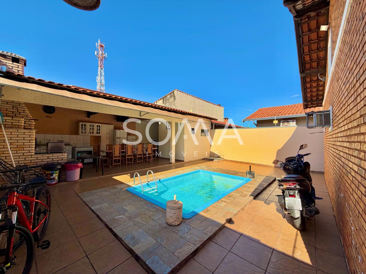 • 01 piscina de alvenaria com revestimentos em fibra;